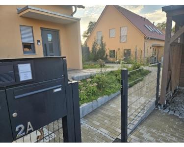 Das zu jeder Wohnung gehörende Grundstück hat immer einen der Wohnungsgröße entsprechenden Gartenbereich und ist komplett eingefriedet. Neben der Briefkastenanlage hat jede Wohnung eine Wechselsprech- und Videofunktion - Sie sehen also, wer vor dem Tor steht.