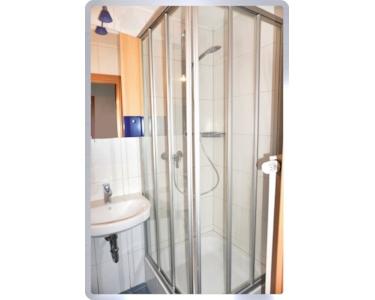 TOP: modernes Badezimmer mit Dusche und Waschmaschinenanschluss