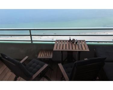 Auf ca. 41 m² Wohnfläche erwartet Sie ein lichtdurchfluteter Wohn-/Essbereich mit direktem Zugang zum Balkon, von dem aus Sie Sonnenaufgänge, Möwen und das offene Meer genießen können. Das separate Schlafzimmer bietet ausreichend Platz zum Entspannen nach einem Strandtag.