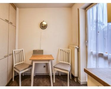 Das Schlafzimmer hat ausreichend Platz für ein Doppelbett und einen großen Schrank - von hier aus lässt sich zudem der Balkon erreichen. Die separate Küche verfügt einen weiteren Zugang zum Balkon und bietet eine moderne Einbauküche sowie Platz für einen kleinen Essbereich. Ein in der Wand integrierter Vorratsschrank ist vorhanden. Das Bad mit Wanne ist funktional gestaltet und gepflegt - der Waschmaschinenstellplatz befindet sich ebenfalls im Bad.