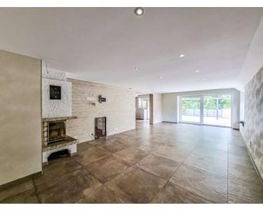 Das großzügige Wohnzimmer besticht durch einen Kamin und einen direkten Zugang zur großen in Richtung Westen ausgerichteten Terrasse (43,91 m²), die mit einer Markise ausgestattet ist. Über eine Außentreppe gelangt man in den 244 m² Gartenbereich der den zukünftigen Eigentümern zur Verfügung steht. Durch die frei nutzbaren Nebenflächen vergrößert sich dieser Anteil nochmal.