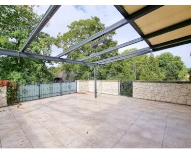 - Terrasse (43,91 m²) mit Markise und Außentreppe in den Garten