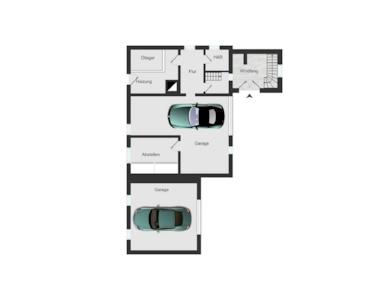 Im Erdgeschoss empfängt Sie ein praktischer Eingangsbereich mit direktem Zugang zu zwei großen Garagen – eine davon verfügt über eine Arbeitsgrube. Zudem finden Sie hier einen Hauswirtschaftsraum sowie den Heizungsraum. Ein kleiner Keller ist verfügbar. Die großzügigen Garagen bieten nicht nur ausreichend Stellplatz für Fahrzeuge, sondern auch viel Platz für Werkzeuge und Lagermöglichkeiten. Zwei weitere Stellplätze befinden sich vor dem Haus unter dem Carport.