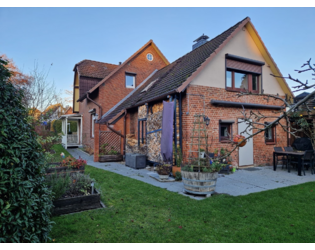 Über die einladende Diele gelangen Sie in die Wohnküche und den hellen Wohn-Essbereich (mit Ofen). Im Obergeschoss des vorderen Gebäudeteils steht Ihnen ein modernes Duschbad, ein Kinderzimmer sowie ein Schlafzimmer inkl. Ankleidezimmer zur Verfügung. Dieser vordere Gebäudeteil mit insgesamt ca. 105m² Wohnfläche ist somit ohne großen Renovierungsaufwand sofort zu beziehen.