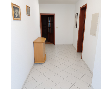 Bodenbeläge: Fliesen (Wohnbereich, Bad, Küche, Flur) / Laminat (Schlaf- u. Arbeitszimmer)
