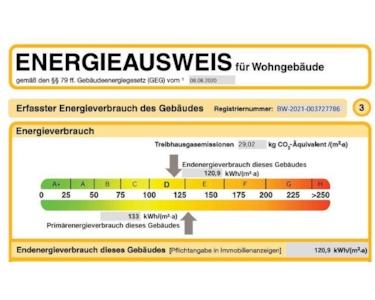 Energieausweis: Bedarfsausweis, Klasse D, 120 kWh/(m²·a), gültig bis 2031