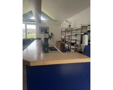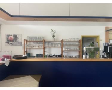 einen großzügigen, hellen Gastraum mit Thekenbereich,