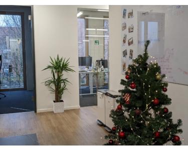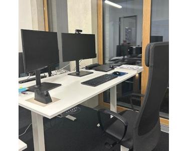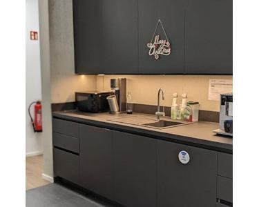 Insgesamt gibt es 6 Räume, die als Büro genutzt werden können, sowie einen Meetingraum im Zentrum der Büroeinheit. Die Fläche bietet derzeit sehr großzügige Arbeitsbedingungen für bis zu 14 Personen (fünf Zweierbüros sowie ein Viererbüro). In zwei der Büroräume kann jeweils ein zusätzlicher Schreibtisch ergänzt werden, sodass insgesamt bis zu 16 Arbeitsplätze möglich sind.