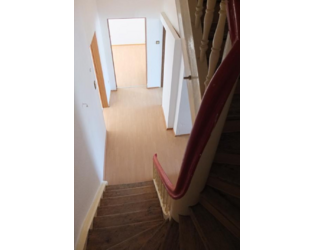 Die Wohnung hat einen eigenen Zugang von einer eigenen Haustür aus und liegt im 1. und 2. Obergeschß des Hauses. Die Treppe zur Wohnung genau wie die Treppe in der Wohnung, beide mit Holzgeländer, wurde von Belägen befreit, das Holz abgeschliffen und lackiert und beide strahlen nun wieder als originale Holztreppen.