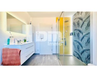 Ein 2022 saniertes Badezimmer / Gästebad mit ebenerdiger Dusche / WC mit Bidet Funktion und Handtuchwärmer komplettiert das Raumangebot im EG.