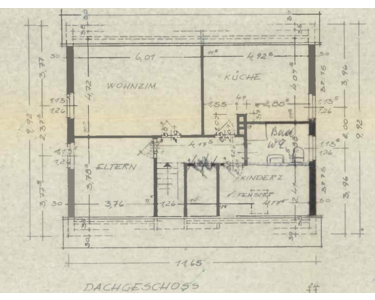 Im Dachgeschoss (Wohnfläche ca.70,93qm) befinden sich drei zusätzliche Zimmer und ein weiteres Bad und eine teilausgebaute Küche.