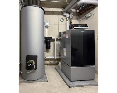 • Moderner Buderus Gasbrennwertkessel mit großem PV-Trinkwasserspeicher, neu 11/2022.