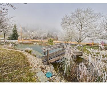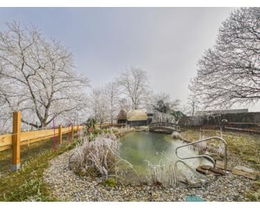 Das Wohnhaus fügt sich harmonisch in das rund 3.000 m² große, sonnig ausgerichtete Grundstück ein und bietet einen herrlichen Ausblick auf die umliegende Naturlandschaft. Zahlreiche liebevoll gestaltete Lieblingsplätze im Garten, insbesondere der hochwertig angelegte Naturbadeteich laden dazu ein, die Natur mit allen Sinnen zu genießen – fernab von Hektik und Trubel.