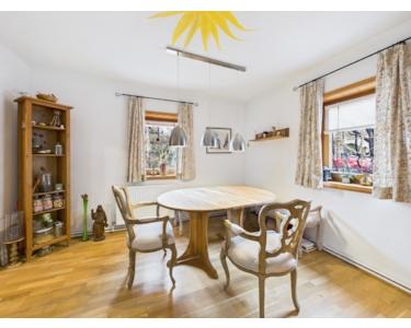 Traditionelle Holzelemente prägen das gesamte Haus und verleihen den Räumen eine warme, wohnliche und ausgesprochen gemütliche Atmosphäre. Der teilweise unterkellerte Baukörper bietet zusätzliche Stau- und Lagermöglichkeiten.