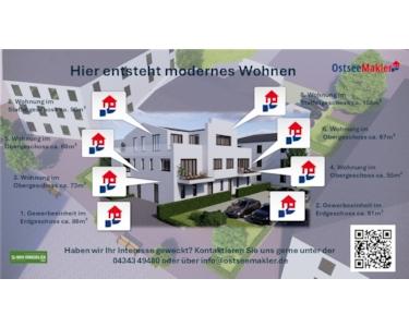 Auf einem großzügigen Grundstück von ca. 847 m² präsentiert sich das Gebäude mit 2 Gewerbeeinheiten und 6 stilvollen Wohnungen, ideal für Kapitalanleger oder Eigennutzer. Die geplante Wohnfläche erstreckt sich über ca. 631 m² und bietet Raum für insgesamt 20 Zimmer, darunter 10 Schlafzimmer und ebenso viele Badezimmer. Jede Einheit ist durchdacht gepant. Das geplante Gebäude verspricht höchsten Wohnkomfort in unmittelbarer Nähe zur Ostsee.