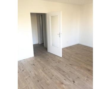 Das stilvolle Apartment bietet viel Raum für individuelle Gestaltung und persönliche Entfaltung. Beim Betreten der Wohnung gelangen Sie in die Diele, die mit einem praktischen, geräumigen Einbauschrank ausgestattet ist. Von hier aus öffnet sich der Blick in den großzügigen Wohnbereich mit einer großen Fensterfront, die viel Tageslicht hereinlässt und für ein angenehmes, offenes Raumgefühl sorgt.