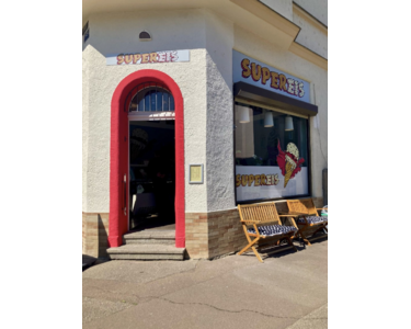 Der Zugang zur Gewerbefläche erfolgt separat vom Haupthauseingang über die Merkurstraße. Das Haupthaus selbst umfasst acht Wohneinheiten und eine Gewerbeeinheit (Eisdiele), diese Gewerbeeinheit ist jedoch unabhängig davon erreichbar.