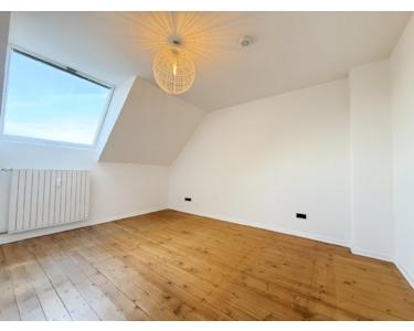 Ein besonderes Highlight ist das ausgebaute Dachgeschoss: sichtbare Balken, hohe Decken und ein großes Dachflächenfenster verleihen dem Raum einen loftartigen Charakter perfekt als Atelier, zusätzliches Schlafzimmer oder individueller Rückzugsort.