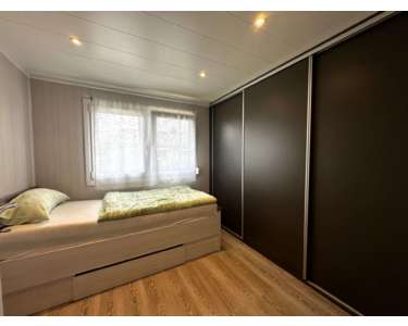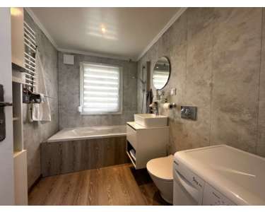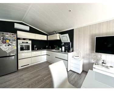 Dieses exklusive Mobilheim ist ein maßgeschneiderter Neubau aus September 2022 und bietet modernes Wohnen in einer ruhigen, naturnahen Umgebung. Auf einer Wohnfläche von 56 m² verteilen sich drei lichtdurchflutete und stilvoll gestaltete Zimmer.