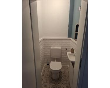 Die renovierte Wohnung befindet sich im Erdgeschoß eines gepflegten Hauses von 1889. Die Wohnung verfügt über drei Zimmer. Die Böden sind eine Mischung aus Eichenparket und Fliesen.