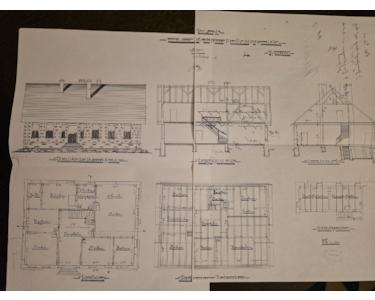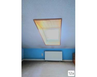 Das Obergeschoss verfügt über zwei offene Räume (ca. 30qm), die durch Fachwerkbalken räumlich abgegrenzt sind und die Einrichtung einer Küche ermöglichen. (11). Zudem gibt es drei weitere Räume mit gemütlichen holzvertäfelten Dachschrägen (12). Das größte Zimmer im Obergeschoss ermöglicht einen weiten Blick auf die Feldmark (13) und die Dachschräge bietet z.B. Platz für einen begehbaren Kleiderschrank. Im Obergeschoss befindet sich ein weiteres Badezimmer mit Badewanne, zwei Waschbecken und einem WC (14) und ein Zugang zu einem Stauraum(ca. 40qm) mit Ausbaupotential. Eine Treppe führt hinauf zum Spitzboden.