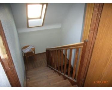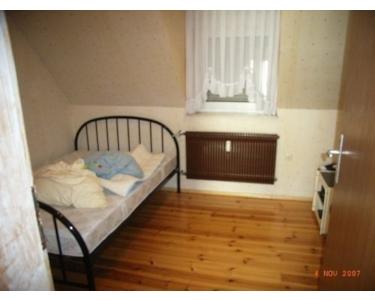 Obergeschoß: Wohnzimmer (Parkett), Kachelofen - nur mit Holz beschürbar, keine Kohle), Eßecke (Parkett), Küche (PVC), Wintergarten (Holzdielen), Büro (Korkboden), Gäste-WC (Fliesen), DG+OG Wfl. 133,70 m²bisher vermietet 750 € + NK 350 €