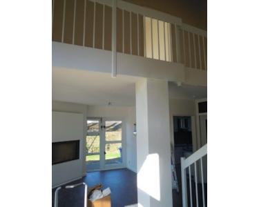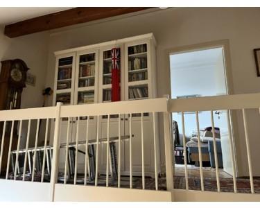 Die Treppe führt dann weiter zur Galerie und den Schlafzimmern (3) und (4). Die Wand zwischen den Zimmern ist nicht tragend und ließe sich auch entfernen um ein Atelier zu gestalten. Die beiden Zimmer verfügen ebenso über Eichenparkett und hohe Wände.