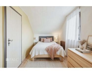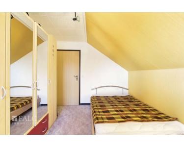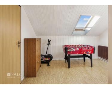 Im Obergeschoss befinden sich drei weitere Zimmer sowie ein Badezimmer mit Dusche. Der großzügige Flur wird durch ein eingebautes Dachfenster mit viel Tageslicht versorgt und eignet sich hervorragend als zusätzlicher Wohnbereich, etwa für ein Hobby, eine Leseecke oder den Traum von einer eigenen kleinen Bibliothek.