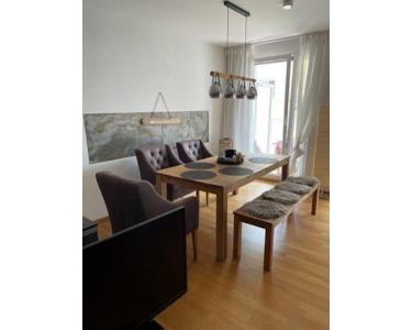 Die lichtdurchflutete, moderne Wohnung befindet sich im 2.OG. Die offene Gestaltung bietet durch den Wohn,- Arbeits- und Esszimmerbereich mit voll ausgestattetem Küchenblock, einen wunderschönen und angenehm großen Raum. Das Ecksofa kann bequem ausgezogen und somit als Gästebett genutzt werden. Das benötigte Bettzeug und Diverses findet Platz im Bettkasten.