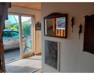 Insgesamt eine Immobilie, in der man sich wegen ihres natürlichen, gemütlichen Charmes wirklich sehr wohl fühlt. Die Terassentüren und die teils bodentiefen Fenster verbinden drinnen und draußen zu einer Einheit.