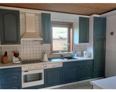 Im Erdgeschoß des Hauses befindet sich der große Ess- und Wohnbereich mit offener Einbauküche. Daneben ein Hauswirtschaftsraum mit Eisschrank, Waschmaschine und sämtlichen Hausanschlüssen (Gas, Wasser, Strom und Glasfaseranschluss). Im großzügigen Eingangsbereich bietet eine Garderobe Platz für Mäntel, Jacken u.s.w., außerdem erreicht man von hier aus die Gästetoilette und den Treppenaufgang zum ersten Obergeschoss.