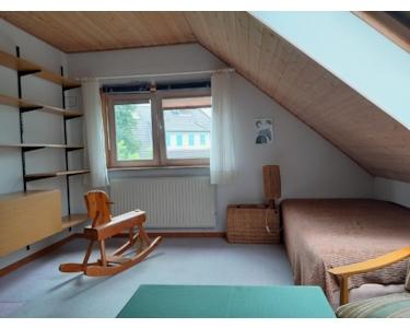 Im 1. OG befinden sich drei Zimmer, die neben dem Schlafzimmer z.B. als Kinderzimmer oder auch als Arbeits- und Gästezimmer genutzt werden können. Außerdem ist hier das große Badezimmer mit Dusche und Badewanne. Ferner ist der Brenner und Kessel der Gasheizung in einem Heizungsraum untergebracht.