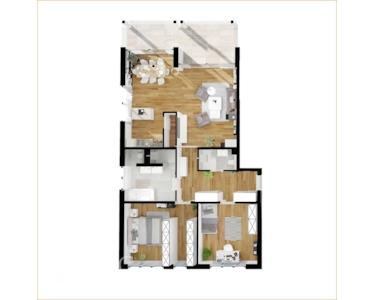 Die ca. 122 m² große 3-Zimmer-Wohnung befindet sich im Erdgeschoss.