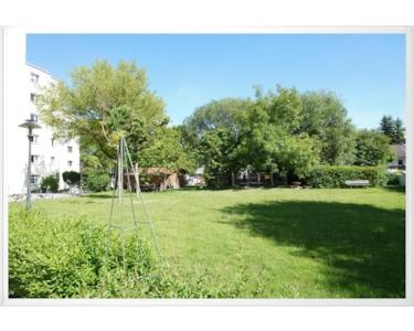 Der Garten ist ein Gemeinschaftsgarten mit Spielplatz, Tischtennisplatte und Sitzgelegenheiten.
