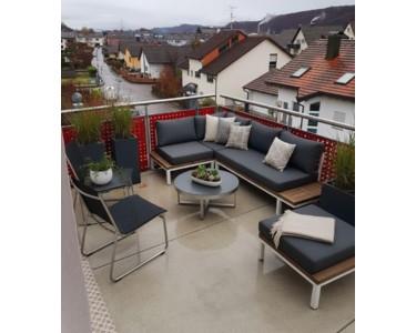 Auf dem sonnigen Balkon (Südseite) können Sie den Ausblick bei gutem Wetter bis zu den Alpen geniessen.