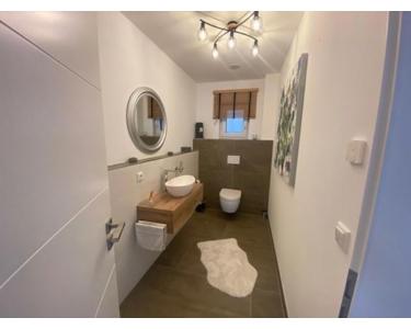* moderne Luft-Wärmepumpe in Kombination mit einer kontrollierten Be- und Entlüftungsanlage sorgt für energieeffizientes und angenehmes Raumklima - auch vorbereitet für den Anschluss eines Kamins mit Druckwächter