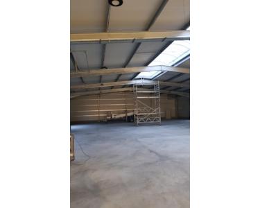 Die im Jahr 2023 fertig gestellte Halle überzeugt durch ihre offene Struktur, ohne hinderliche Stützen und die drei mittels LKW befahrbaren Einfahrtstore. Der Bereich vor der Halle ist groß genug um sogar leicht mit großen LKWs rangieren zu können.