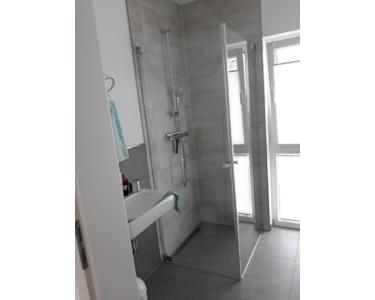 Bad mit Dusche (ebenerdig), WC und Bidet,
