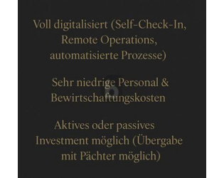 - Aktives oder passives Investment möglich (Übergabe mit Pächter möglich)