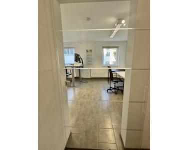 Über zwei Etagen erstreckt sich die Einheit, bestehend aus vier Büroräumen, einer Küche, WC-Anlage, Dusche, Abstellräumen, Lager, Fluren und einer großen, geräumigen Garage mit Sektionaltor.