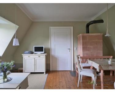 Blick zu TV und Kachelofen