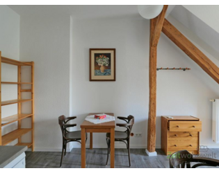 ### Please note the availability date! Bitte das Verfügbarkeitsdatum beachten! ### gemütliche kleine Dachgeschosswohnung in der Dresdner Neustadt; (Wichtig: zum Fototermin 9/2023 war die Möblierung noch nicht vollständig aufgebaut!); WLAN inklusive; helles Schlafzimmer mit breitem Bett und Kleiderschrank; Wohnbereich mit Sessel (Foto fehlt), TV und Esstisch, offene Küche in einer Seitennische; Bad mit Dusche und Waschmaschine; separates WC; Sitzecke zur Mitnutzung im Garten hinter dem Haus; Pauschalmiete 745,00 Euro; Kaution 1.000,00; Vermietung nur an max. 1 Person!; Mindestmietdauer 3 Monate; Endreinigung Mietersache; Pflichtangaben zum Energieausweis: Energieausweis gültig bis: 20.09.2033; Baujahr Gebäude: 1887; Energieausweis: nach Verbrauch; Energieverbrauch: 108.8 kWh/(m²a); Energieeffizienzklasse: D; Primärer Energieträger: Erdgas H