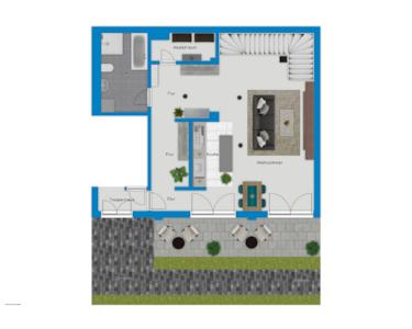 Die Wohnung umfasst insgesamt vier Räume, darunter drei Schlafbereiche und zwei stilvolle Badezimmer. Eine moderne Fußbodenheizung sorgt auf beiden Etagen für ein angenehmes Wohnklima. Die Terrasse bietet zusätzlichen Platz zum Entspannen an der frischen Luft.