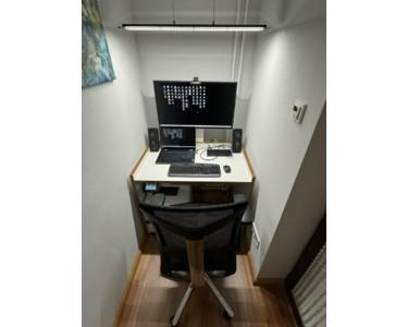 Schreibtisch mit Bürostuhl, USB-C Dockingstation, 27" UHD-Monitor, HP-Color-Laser Multifunktionsdrucker, Duplex, LAN, WLAN