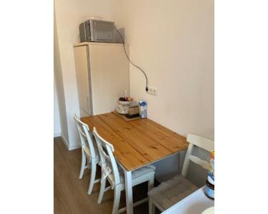 Die hier angebotenes Zimmer befindet sich in einer 3er WG im 4. Obergeschoss (mit Aufzug) des Mehrfamilienhauses. Das Zimmer ist 21qm Groß und möbliert mit einem Schrank und einen Tisch (im Keller und nutzbar wenn notwendig). Insgesamt 3 Zimmer vorhanden und 2 Zimmer schon vermietet. Die WG verfügt über eine eingerichtete Küche mit Spülmaschine, ein Vollbad, einen Abstellraum, eine gemeinsame Waschküche und einen gemeinsamen Fahrradabstellraum.