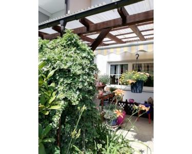 Große geflieste Terasse , Überdacht mit Markise