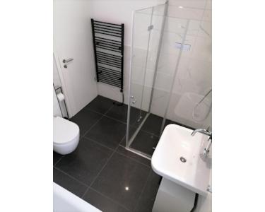 * Diele Bäder und Küchenboden-TG mit 60x60 Bodenfliesen grau.