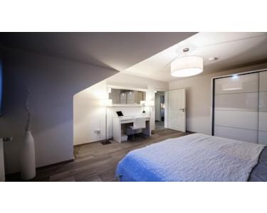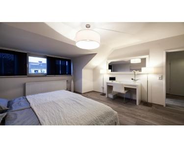 Die moderne Wohnung befindet sich in Porz-Wahnheide. Besonders an diesem Objekt ist die Symbiose aus absolut ruhiger Gegend, die zum Joggen, Wandern und Radfahren einlädt und der optimalen Anbindung an den Flughafen Köln/Bonn und die Messe Köln. Der 3km entfernte Flughafen ist mit dem Auto in 5 Minuten zu erreichen. Eine Bushaltestelle ist nur 250 Meter entfernt.