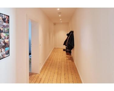 Auch die Elektrik wurde vollständig erneuert. Die Decken wurden abgehängt und im Flur, in der Küche sowie im Bad mit modernen Deckenspots ausgestattet. Wände und Decken erhielten einen neuen Putz. Zudem wurden die straßenseitigen Fenster und das Badfenster komplett ausgetauscht und die Loggia geschlossen.