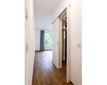 Alle Fenster sind bodentief und lassen die Räume hell und großzügig wirken. Das Herzstück bildet der große Wohn- und Essbereich mit offener Küche. Hier sorgen die hochwertigen Siemens-Einbaugeräte für höchsten Kochkomfort. Der anschließende ruhige Balkon mit Blick ins Grüne lädt zu entspannten Stunden im Freien ein.